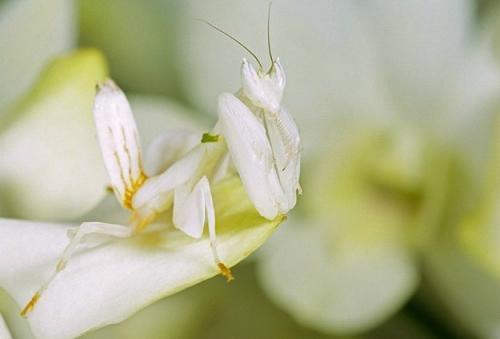 这种物种利用颜色模拟周围的环境。此外,这些物种身上覆有无数的触毛,肉质附属,脊柱和脊背,这些附属部位可以提供额外的伪装效果。就像它的名字那样,兰花螳螂的腿部,颈部和腹部有白色和粉色突起,当它们身处兰花上时,这些“用具”可以帮助它们巧妙的实施伪装术。
