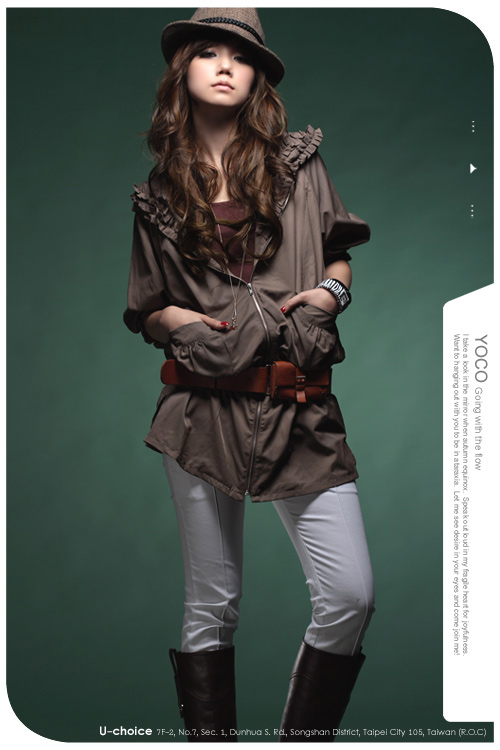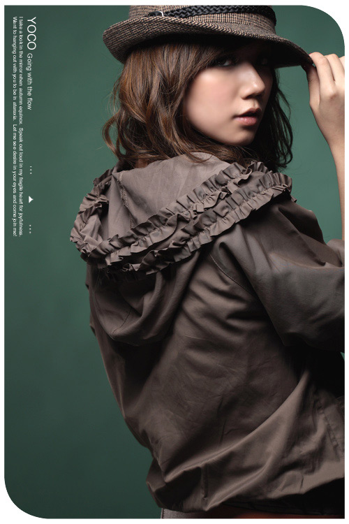 日韩杂志大推荐韩製荷叶连帽长版外套 $32