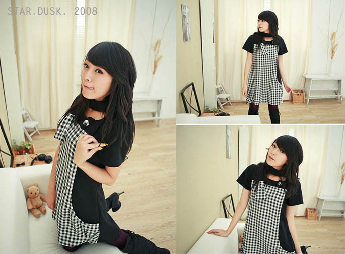 這條裙只是前面有格仔,而後面是全黑色的,滿特別哦! 穿起來好可愛