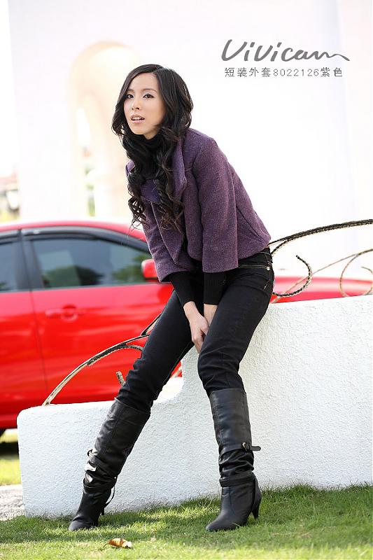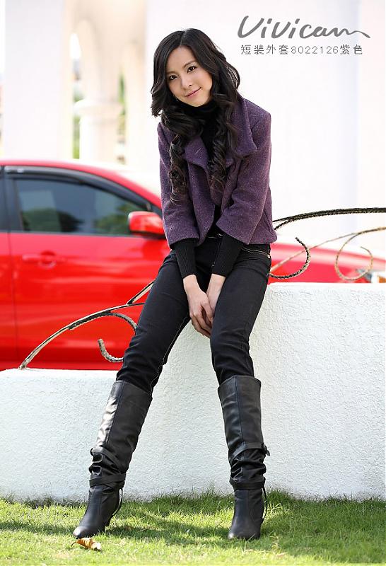 44. Vivicam紫色圆摆OL轻熟风格呢外套
