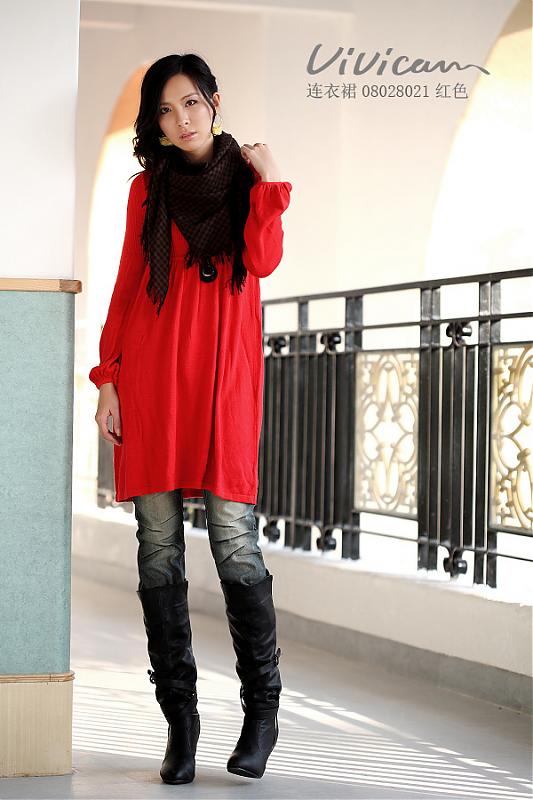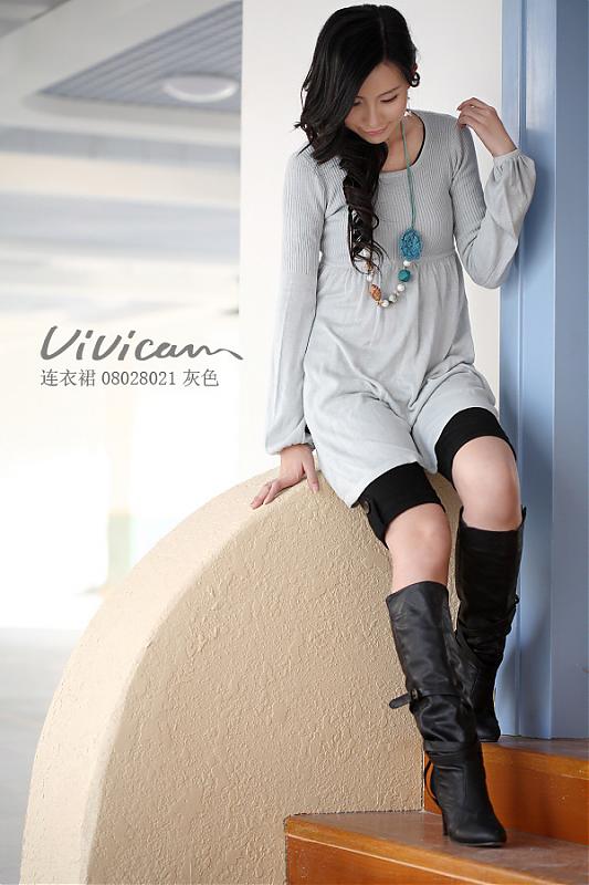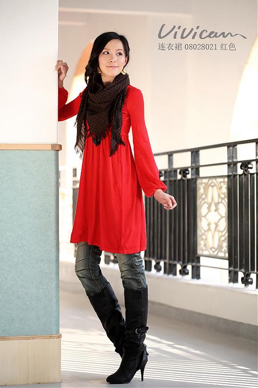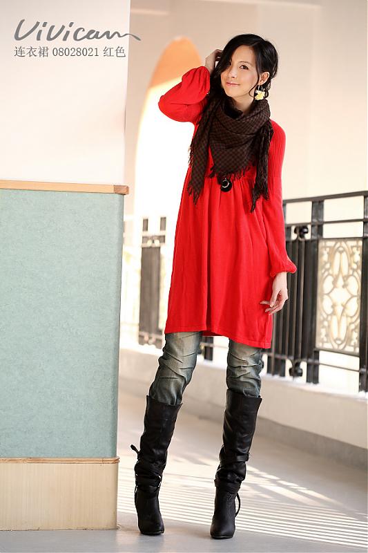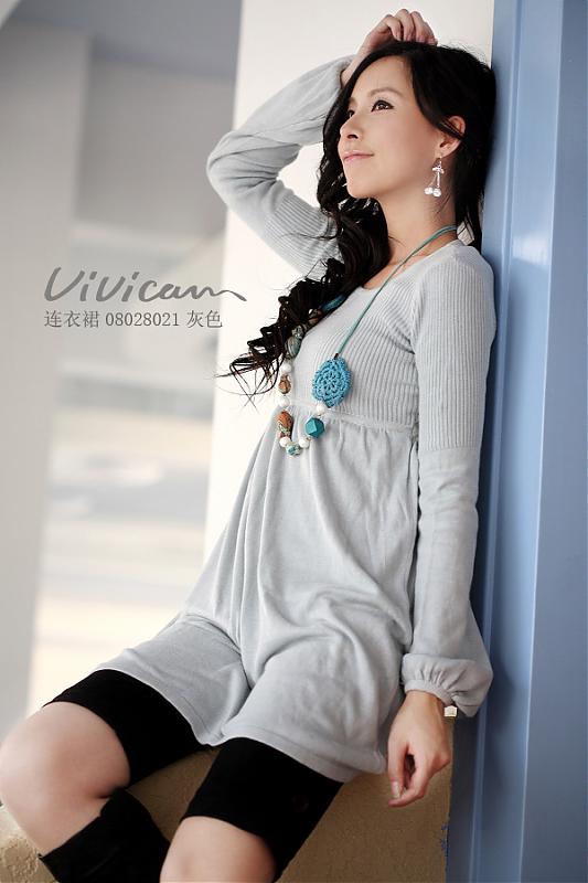 45. Vivicam 灯笼袖简约毛线连衣裙