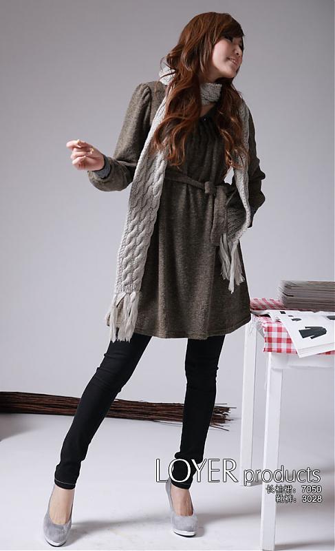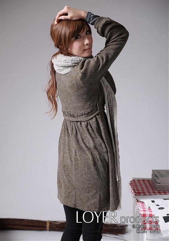 48. loyer 钉扣羊毛拉架棉长袖洋装