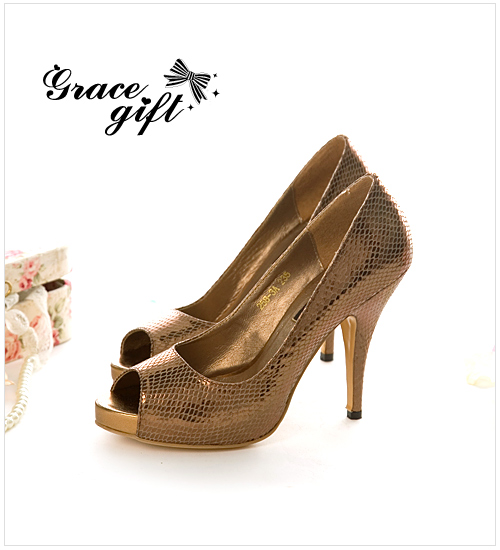 150. 正品Grace Gift 水钻蝴蝶结低跟鱼嘴鞋