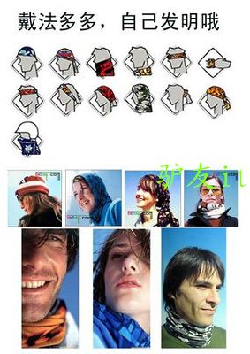[FONT=华文中宋]★★无缝头巾是今年最流行的时尚又实用的户外头饰装备。一块小小的布料,经过魔术般的扎法,产生各种不同的效果,因为简单,所以奇妙,至少有十种以上的不同扎法,变换出不同的效果,可用作头巾、围巾、头带、风沙罩、无檐圆帽、帽兜、护腕、裹胸...... 适用于跑步、徒步、登山、攀岩、滑雪、网球、摩托车、沙滩车、自行车、拓展训练等各项户外运动(请尽情发挥想象,只有想不到,没有做不到。)无论男女老幼皆适合。因为它的时尚性和实用性使得一上市便广受欢迎![/FONT]