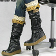 豹纹白色花边靴