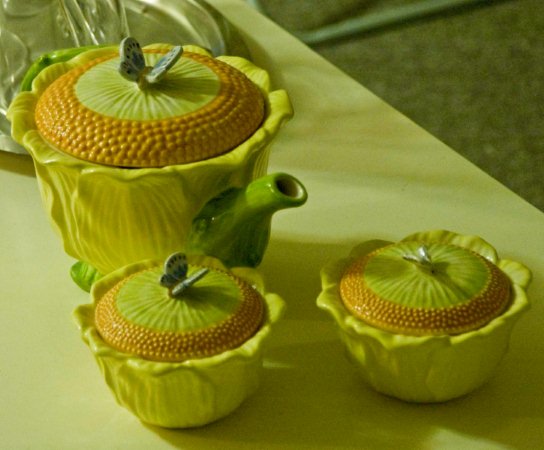 漂亮茶壶套装(从没用过, 但是蝴蝶前两天摔掉个翅膀 5刀)