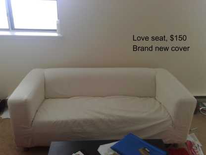 IKEA Love seat, 6个月新,里外都是干净的,免费送一个全新的白色的沙发套。$150