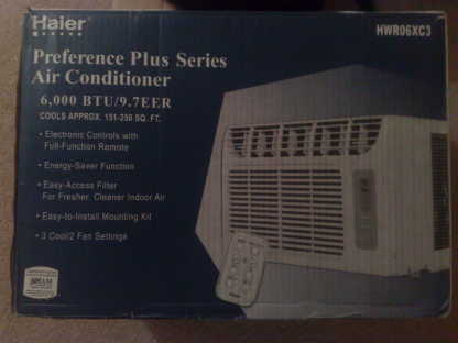 海尔空调,窗机。去年夏天买的,用了一个夏天,今年夏天回国了,一直放着没用,6000 BTU,带遥控。 适用的窗户高于13.5 inch,22.5 inch to 33.5 inch宽。一般apartment的窗户都fit。 $80