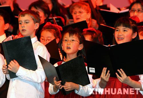 1月10日晚,在加拿大首都渥太华,来自西渥太 华儿童合唱团等团体的小演员们在春节联欢晚会上演唱中国歌曲《半个月亮爬上来》。当天,渥太华华人社区服务中心和华人联合会联合举办“新春联欢晚会”,得 到渥太华主流社区艺术团体的热情参与。目前,加拿大华人的牛年春节庆祝活动正在逐步展开。
