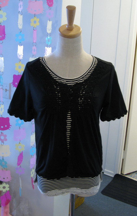 非常超值的两件套~内外可以脱卸.脱卸下来是完完全全的两件独立的衣服.条纹衫是万年款打底衫,袖口/下摆/领口都做有蕾丝,无论搭配其他任何款式都是可以的.外件可以搭配吊牌在更热的天气当开衫或上装穿.超值的