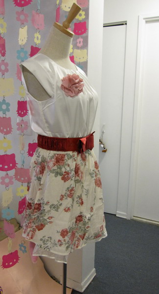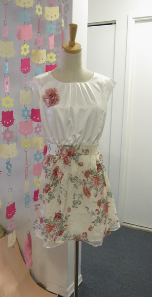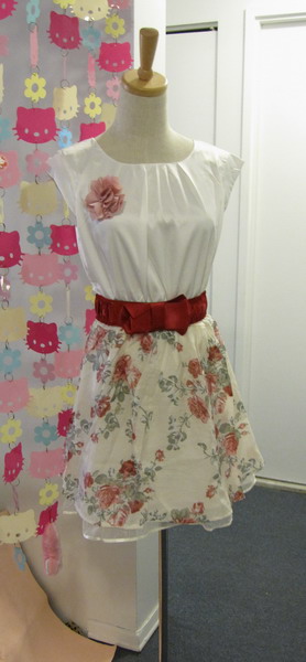 日单 柔美印花连衣裙.配胸花 上身是白色丝滑的色丁材质,下身是印有柔美的玫瑰花图案的纯棉材质,上身很有韩剧女主角的范儿。背后有拉链,赠送的胸前的立体胸花是可拆卸的,QQ有内衬,所以不会透哦 颜色:上身白色 下身米色底印花 质地:上身色丁 下身棉 尺寸(cm):均码(腰围71 胸围86 连内衬下摆Q长83 肩宽36)