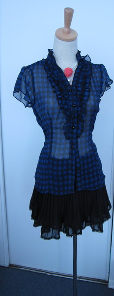 出口欧洲 正品forever21经典格子花边领雪纺衬衫 S 蓝黑格 雪纺柔软的质地能自然展示身体曲线 较宽松的款式 适合很多种体形的女性穿着 自身的褶皱花边设计 普通的小上衣很有女人味的气息 让你继续甜美喔 S适合胸围78~84左右肩宽33~36左右衣长61左右