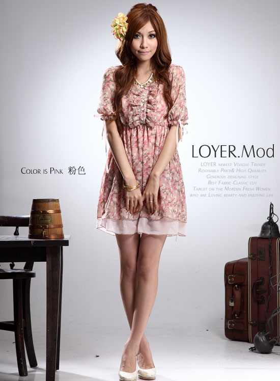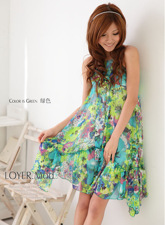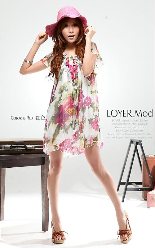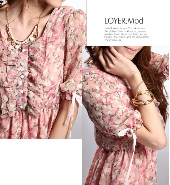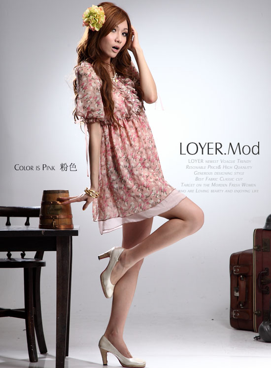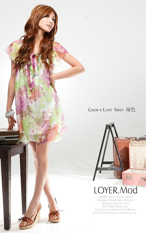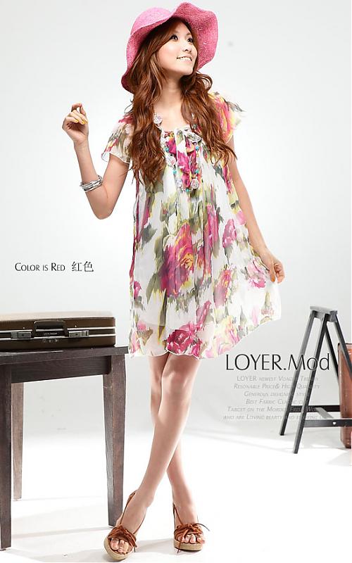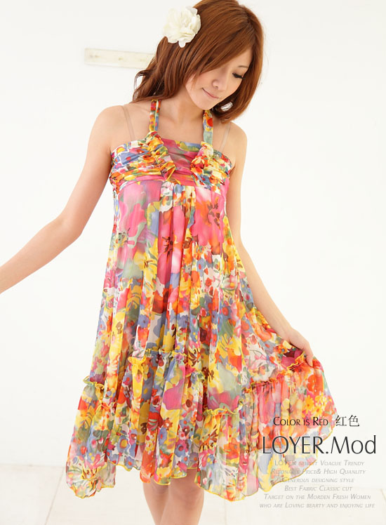 〖介绍〗:胸前压折系带的连身裙用清爽的大花雪纺料制成,感觉非常清凉