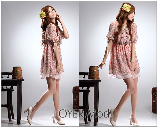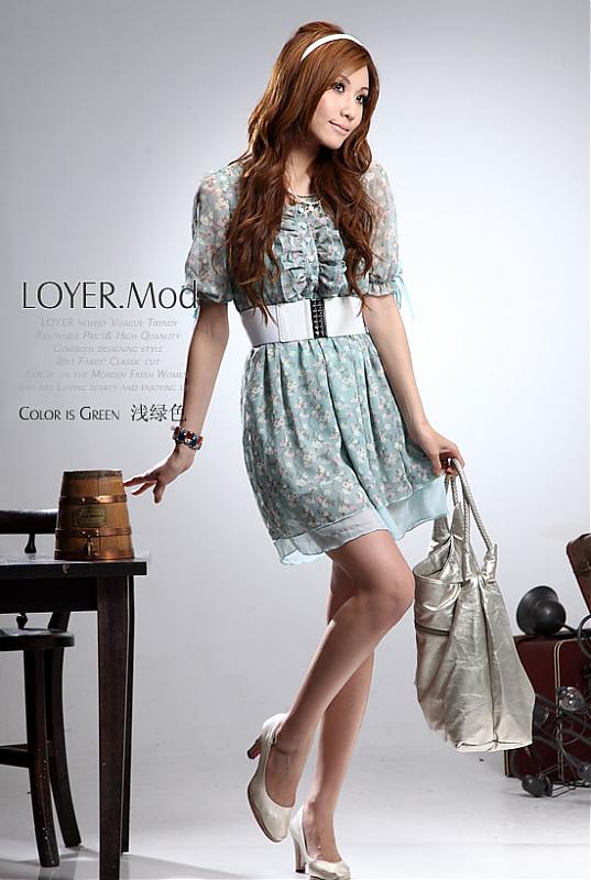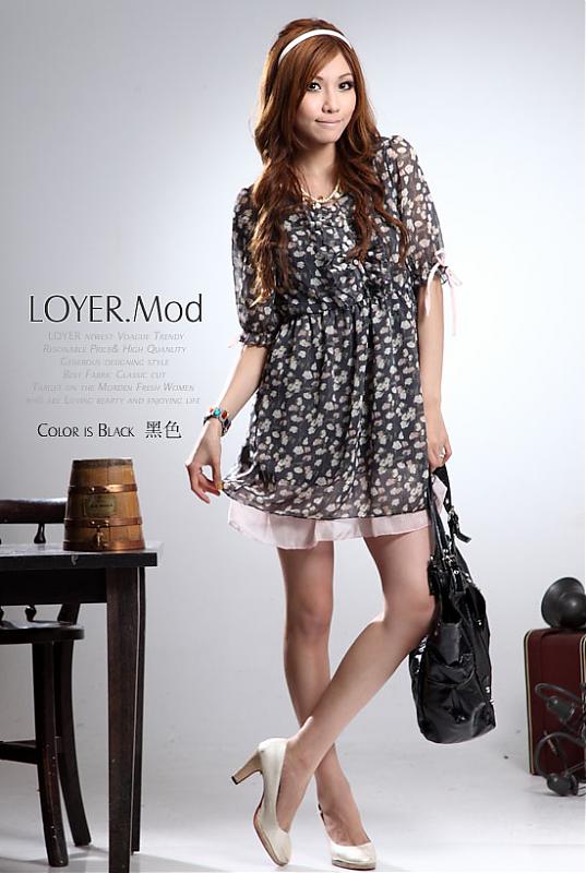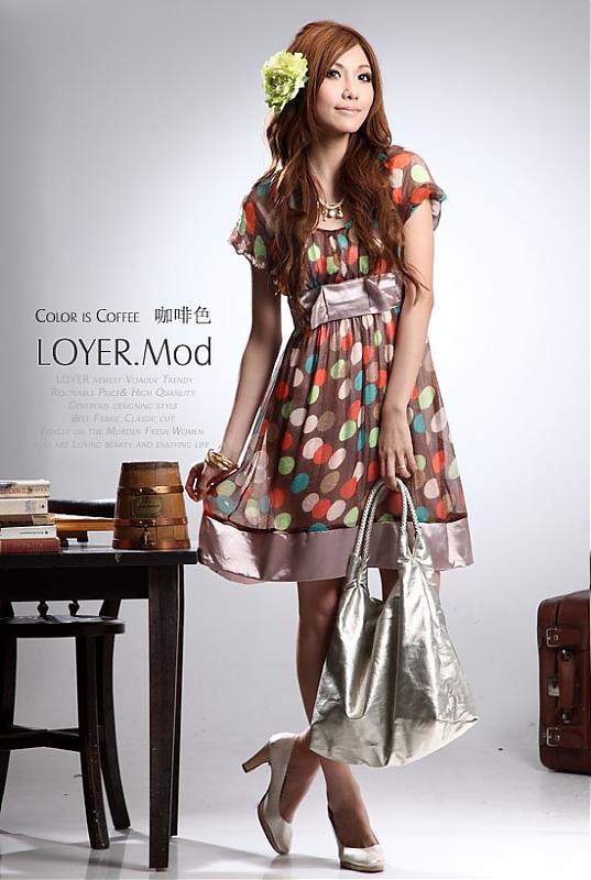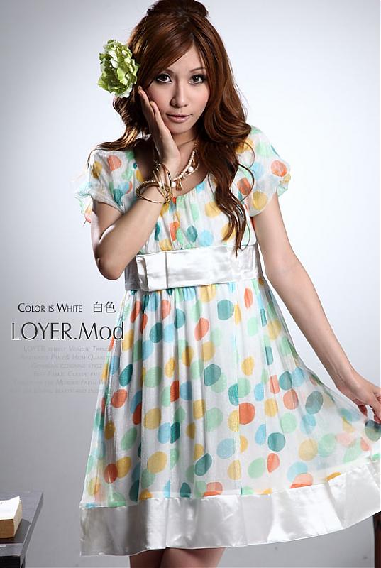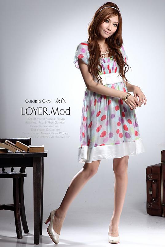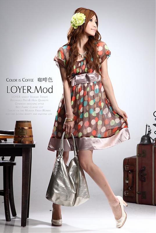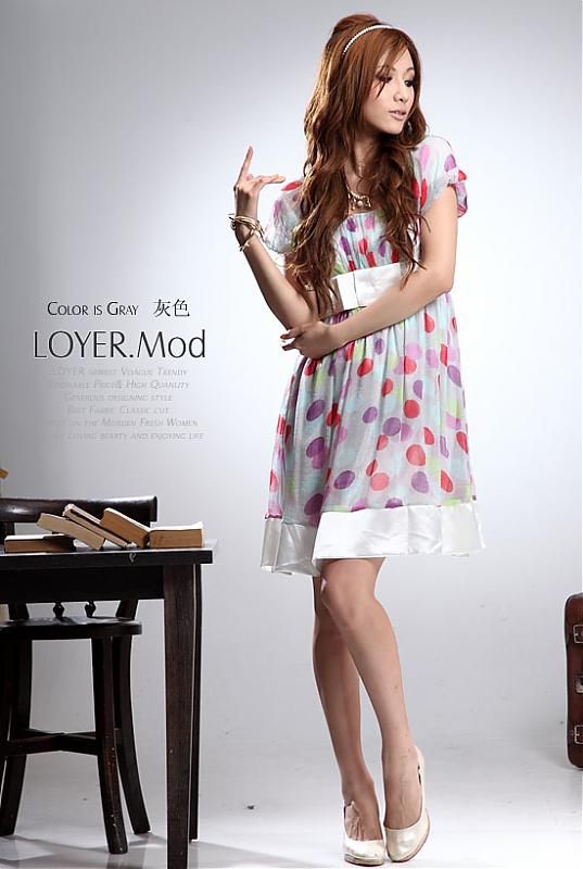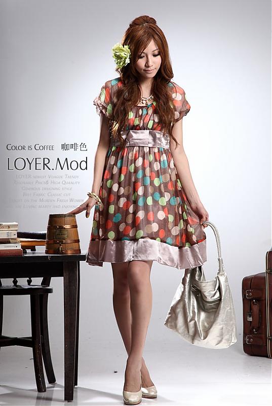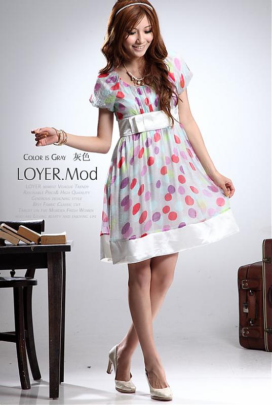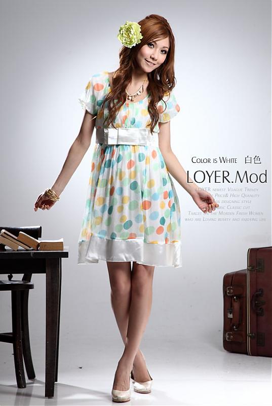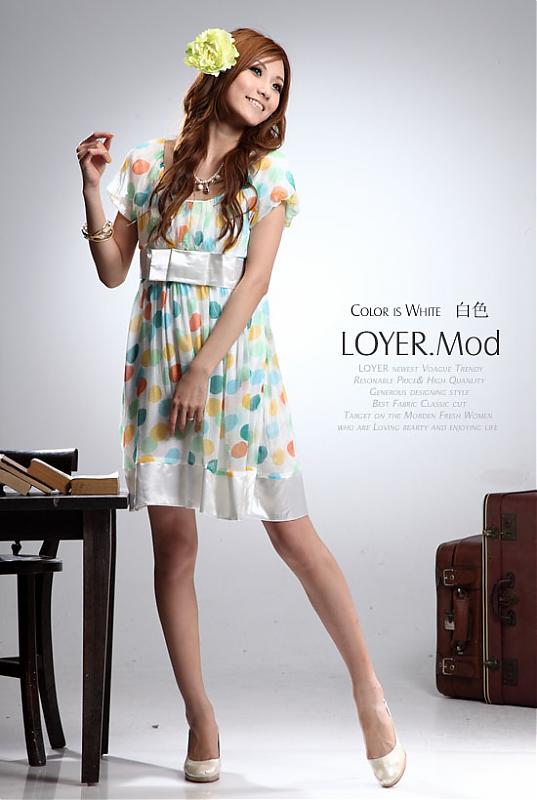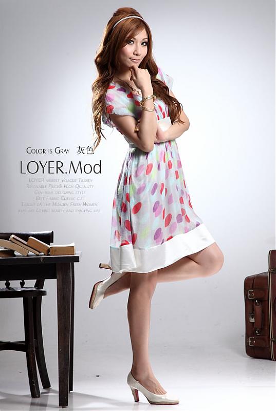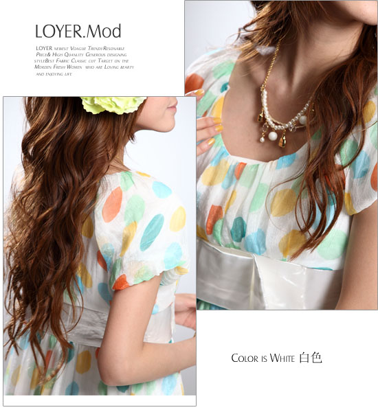 简单描述: 泡泡袖设计,配以活泼明快的圆点图案,给人以活力四射,清雅动人的感觉