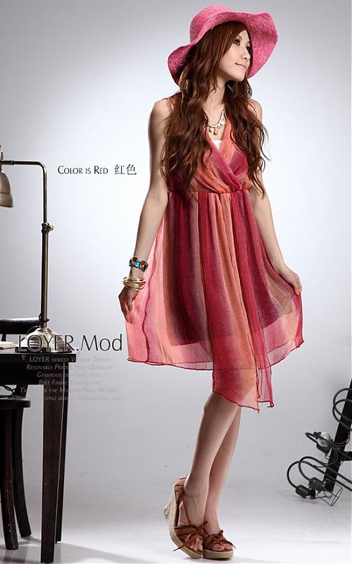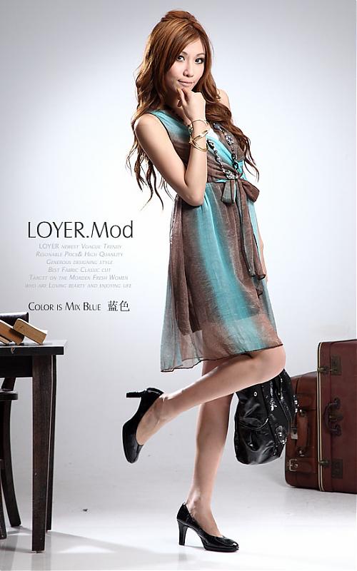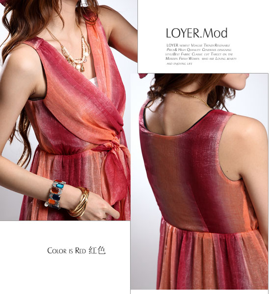简单描述: 非常有特点的渐变面料,腰间抽带设计,整件裙装低调而优雅,高贵而迷人