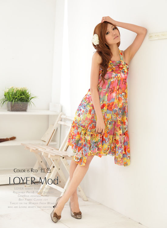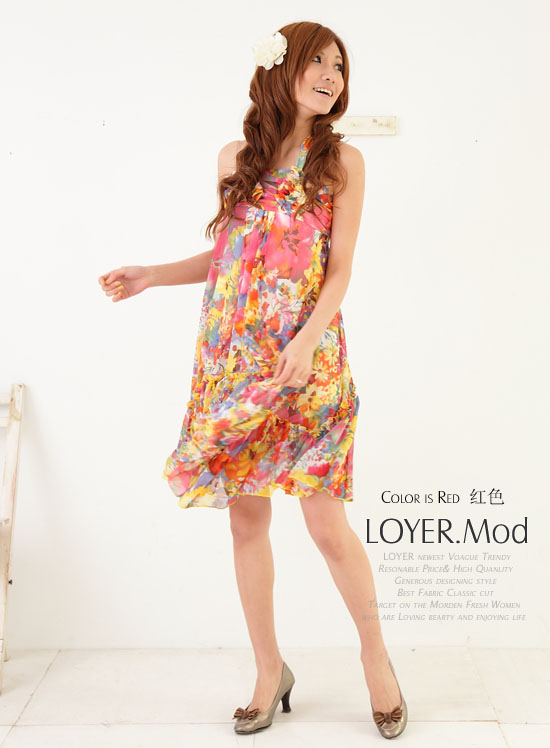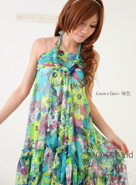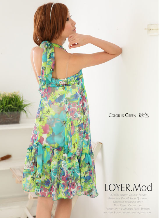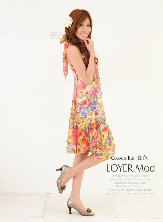 46. loyer炫目夏威夷女郎~大花绕颈绑带连衣裙 非常炫的热带风情花色,推荐