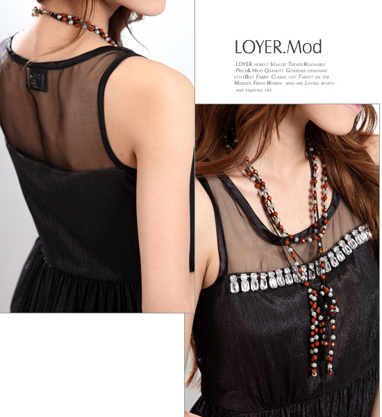 47. loyer透明肩部钉珠闪光雪仿面料连衣裙