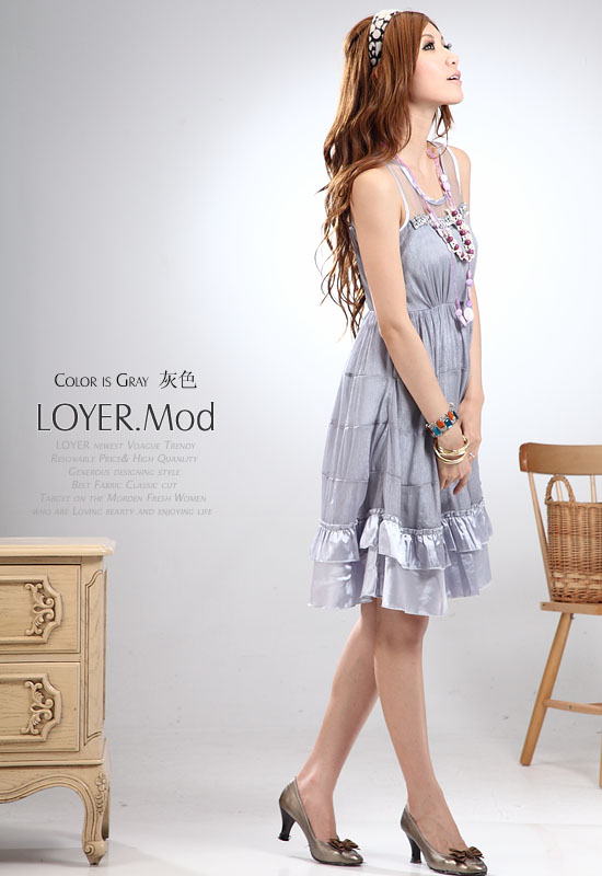 简单描述: 胸前用大片若隐若现的欧根纱面料,并以进口的台湾钻装饰,配上银缎绉面料,打造出一款高贵优雅的迷人裙装