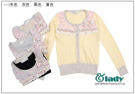 53. 甜美蝴蝶结串珠贴布针织开衫