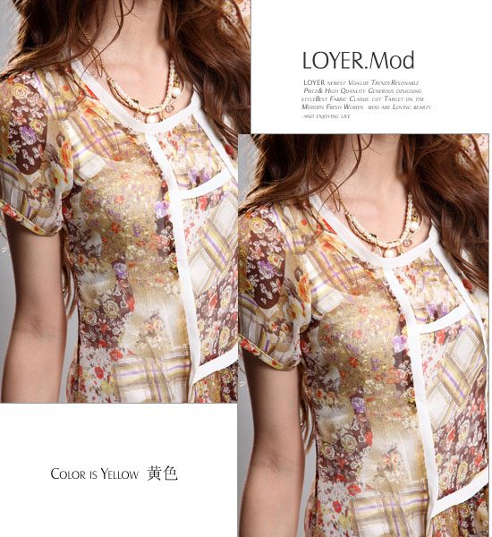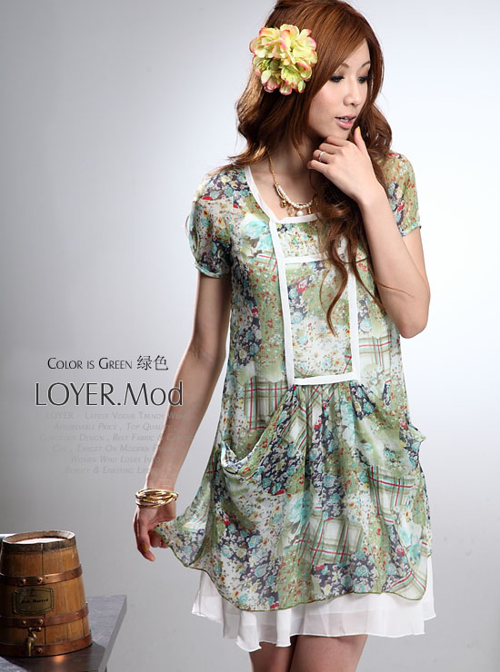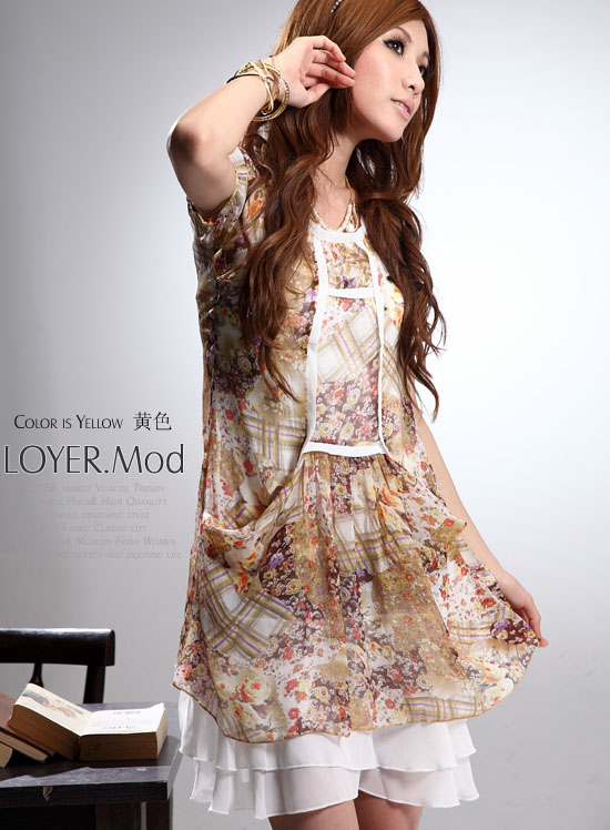 63. 双口袋两件套碎花裙 ( 衬裙可拆分) 简单描述: 大口袋设计的独特裙装,采用写意的花朵图案及淡雅的颜色,内里配以雪纺边背心,时尚的优雅味道散发出来 颜色: --请选择--紫色黄色绿色 尺码: 均码 面料: 面料:外:100涤纶(印花雪纺)内:100%棉 其它: 肩宽30厘米,胸围86厘米,衣长80厘米 预定价: $28 黄色