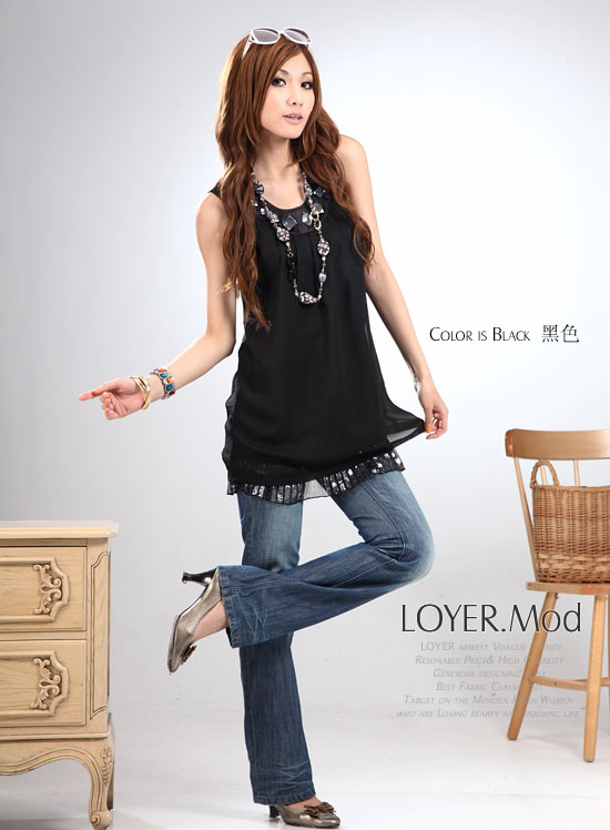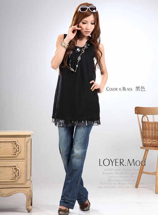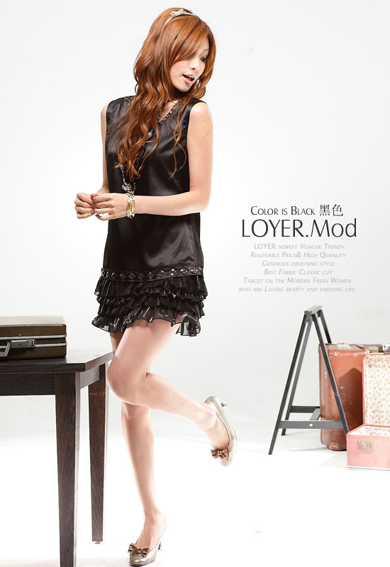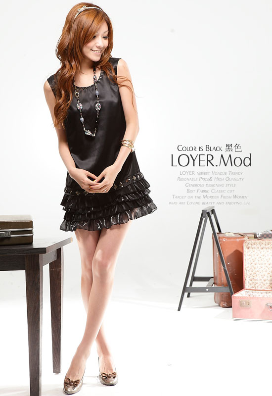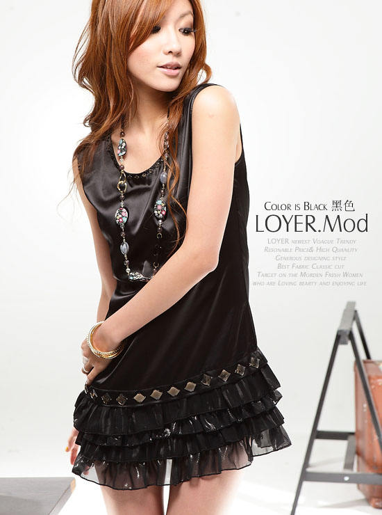 65. 领口钉珠层层下摆背心裙 [FONT=宋体]【尺码】:[/FONT] [FONT=宋体]均码:肩宽39厘米:衣长81厘米:胸围88厘米:袖长17厘米[/FONT] [FONT=宋体][/FONT] [FONT=宋体]领口装饰以小钉珠,下摆装饰大钉珠及用烫银边做配饰,整件衣服简单大方,优雅动人[/FONT] [FONT=宋体][/FONT] [FONT=宋体]预定价: $28[/FONT] [FONT=宋体][/FONT] [FONT=宋体]黑色[/FONT]