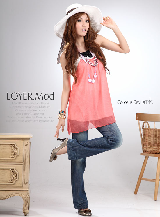 66. 钉珠领口背后交叉带闪光雪纺长衫 简单描述: 白色边装饰以钉珠,非常有视觉效果,配以闪光邹面料,百搭而不落俗套 颜色: --请选择--红色紫色蓝色 尺码: 均码 面料: 面料:100涤纶(闪光绉) 其它: 胸围82厘米,衣长79厘米(含肩带) 预定价: $25 红色
