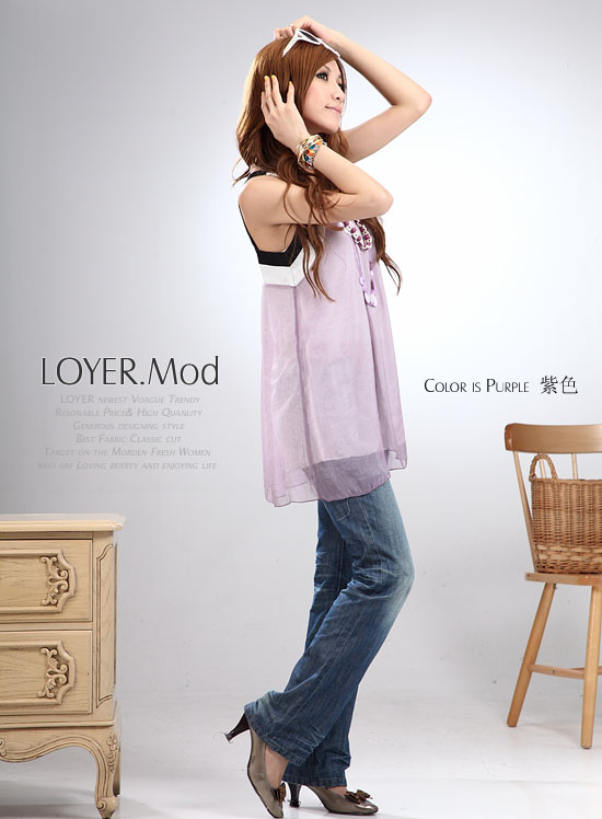 67. 钉珠领口金属黑色下摆雪纺衫 简单描述: 简单的款式用网纱钉珠装饰,下摆用黑色银边做配色,整件采用珍珠纱,低调中散发着迷人的优雅 颜色: --请选择--黑色白色灰色 尺码: 均码 面料: 面料:100涤纶(珍珠纱) 其它: 肩宽34厘米,胸围88厘米,衣长80厘米 预定价: $26 白色