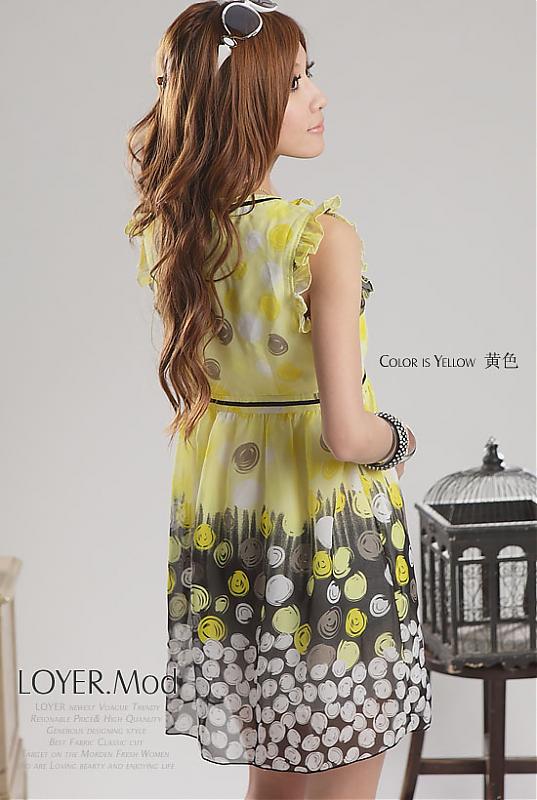 74. 蝴蝶袖彩色圈圈图案清爽连衣裙