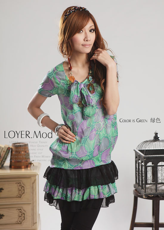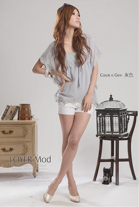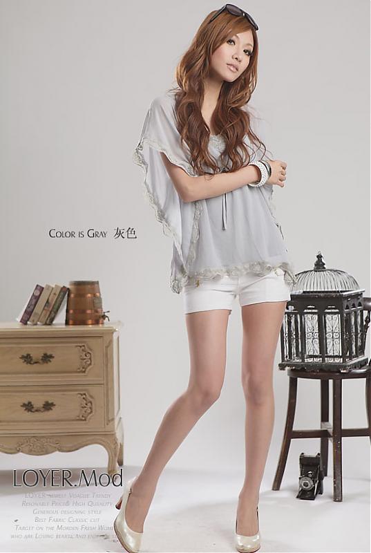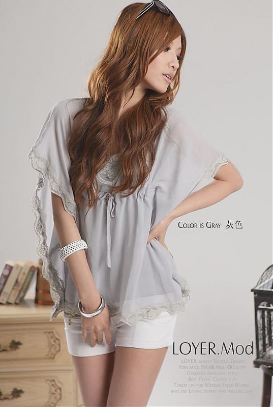 简单描述: 两件套上衣,非常宽松的蝙蝠袖设计,对身材没有限制,轻柔的乔其纱给人以柔美的感觉