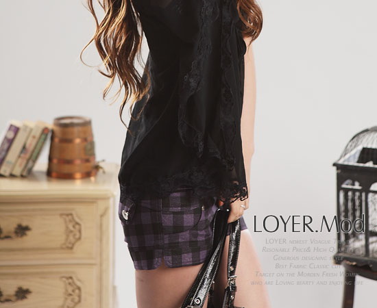 简单描述: 烫银格子短裤,今夏非常流行的烫银面料和格子元素的结合,很赞的一款