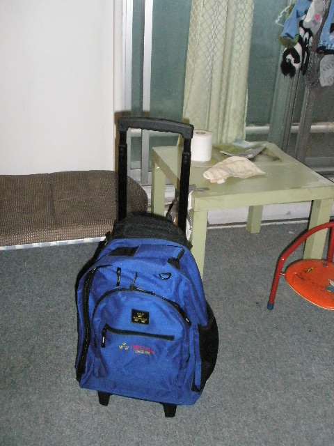 2. 9.5成新的轻便型蓝色旅行箱包(有拉杆和滚轮):------- 19.0