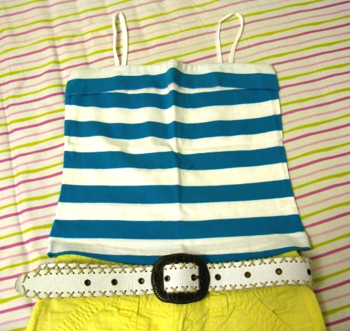 蓝白色相间吊带,百搭。MA.TSU.MI 100% cotton,面料很好。 8成新。6刀