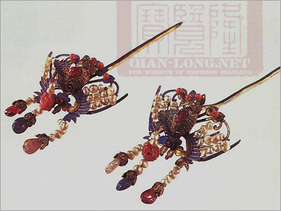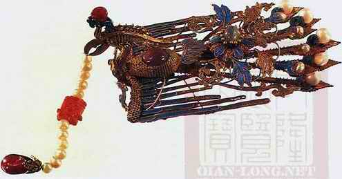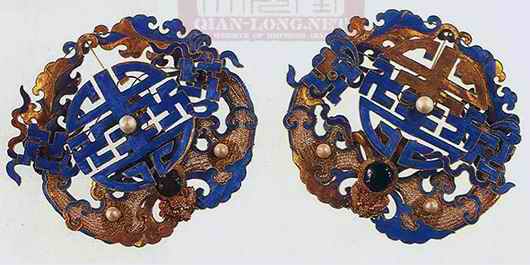 这个我不知道叫什么,只知道是佩带朝冠时候的。你看看,镶嵌了那么多的珍珠,红色小点儿可能是珊瑚吧。真奢侈啊:mad::mad::mad: