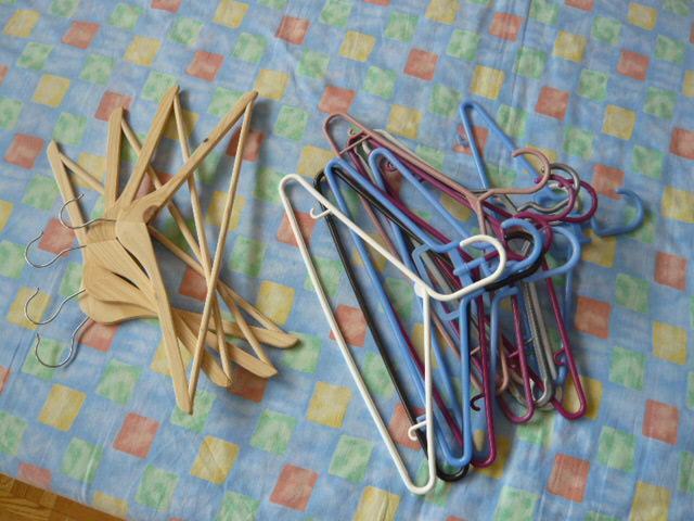衣架 (木质: 5个$1, 塑料:10个$1)