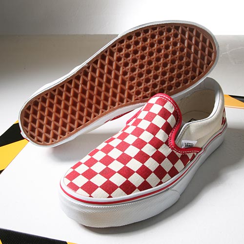 【男/女】VANS經典潮流格紋懶人鞋-紅格V53 66.7刀