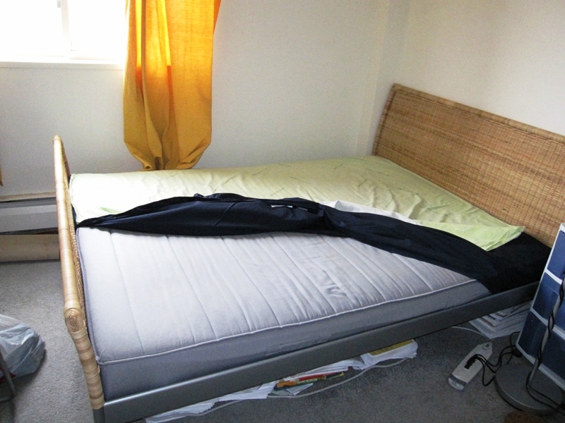 2个床 样式都是一样 只是size不同 床的下面是铁架子 安装起来非常方便快捷 跟原来的木架子相比较 不用担心木架子的螺丝安装久了会产生滑丝现象 queen的床架+ 床垫 $ 220 一年前购买于IKEA queen size 的床 已经sold thx~