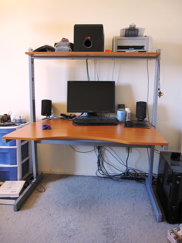 电脑书桌 一年前购买于IKEA 保护的非常好 质量也很好 一年前买的kea的原价 税后$200多(比较同类桌子IKEA | Computer workstations | Desktop solutions | FREDRIK | Work station) 现在只卖 $ 80 hold 桌面很大 实用性很高 桌子非常牢固 两边是金属结构 不怕螺丝会滑丝 桌面的高度可以自己随便调节 上面的板子高度也可以随便调节 非常方便