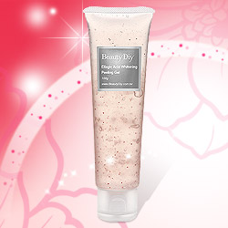 天然莓果萃取美白精華 去角質同時幫助肌膚亮白★ 肌膚表面黑色素清光光 肌膚均勻細緻0瑕疵《鞣花酸美白去角質凝凍》擔心去完角質後的臉蛋老是泛紅、見不了人?推薦你使用這款專門針對脆弱及斑點肌膚設計的去角質凝凍,只要輕輕揉搓,特殊的配方設計,即能溫和地吸附肌膚表面的老廢角質,不會有一般磨砂膏的刺激感,也不會有果酸代謝角質後的泛紅刺激現象,透過弱鹼性凝膠與肌膚表面老廢角質的融合,幫助角質澎潤、柔軟,並藉由按摩作用,溫和將多餘的老廢角質給清除乾淨,幫助角質中黑色素的去除。連日曬後的肌膚都能使用的溫和型去角質,幫助不小心曬黑的肌膚重返原來膚色,內含有天然溫和不刺激的美白成分-鞣花酸,它是一種存在於天然莓果如草莓、藍莓中的多酚成分,具有抗氧化及美白淡斑的效果,在去角質的同時,能代謝累積在角質上的黑色素,還能發揮美白作用,另外,特別添加洋甘菊萃取、甘油及薰衣草精油,這些植物複合配方可以降低去角質時造成的刺激感,並具有舒緩保濕的效果,讓去角質成為每周溫和的臉部運動,另外,維他命C醣苷能幫助肌膚變得更加嫩白透亮,輕鬆甩掉「黃臉肌」容量:100g