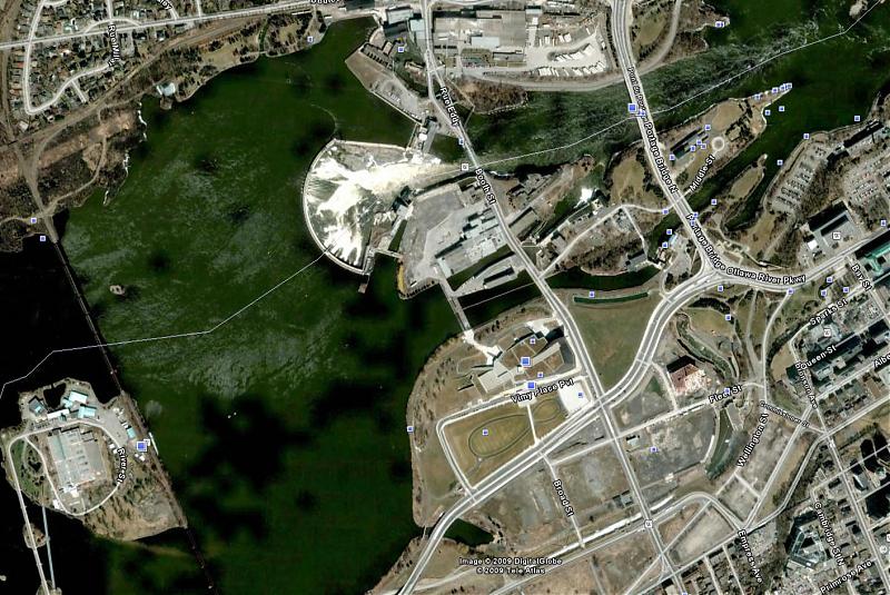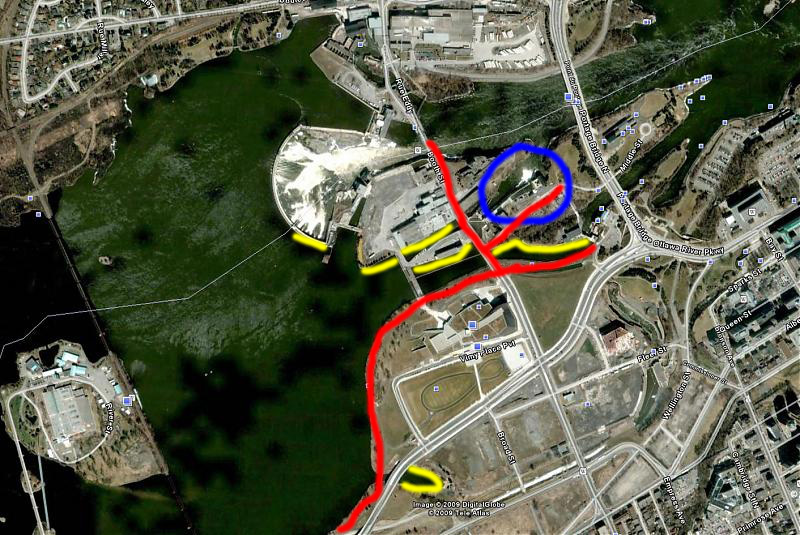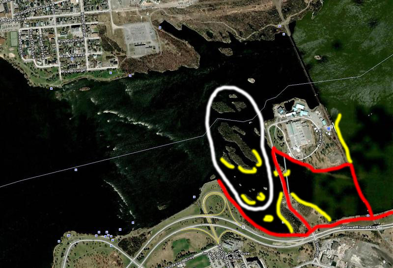蓝圈是Ottawa Hydro的发电站,有一个坝,不让进,需要和Ottawa Hydro联系