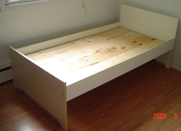[FONT=宋体]木板床:床架[/FONT]+[FONT=宋体]木板,[/FONT]$40, [FONT=宋体]加一层薄垫子可直接睡,相当于很硬的床垫,特别适合睡不贯席梦思的人。[/FONT]