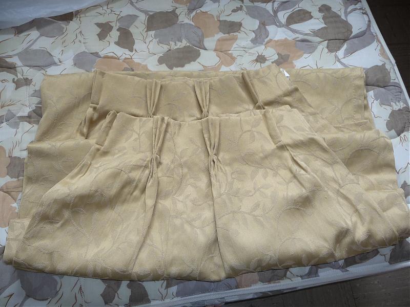 1. 2块一样窗帘配挂钩,每个长156cm底宽150cm,亲手洗干净。共$10 (sold)