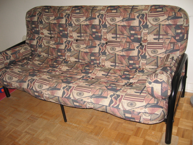 搬家出售所有东西。联系电话 260-2860。 --------------------------------------------- 沙发床, 单人床, 电视, 电视机架, 录像机, 微波炉, 搅拌器 ---------------------------------- 沙发床 $80 电视(19寸),机架,TOSHIBA录像机