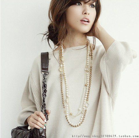 超美的山茶花珍珠毛衣链(降价了),豌豆角串珠花项链,甜美蕾丝打底裙