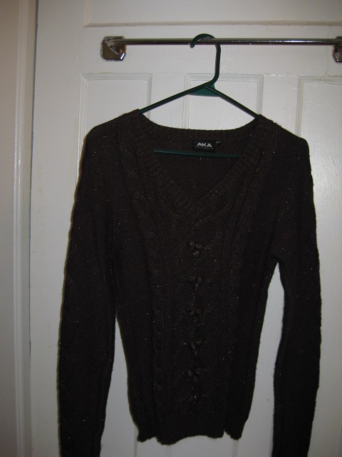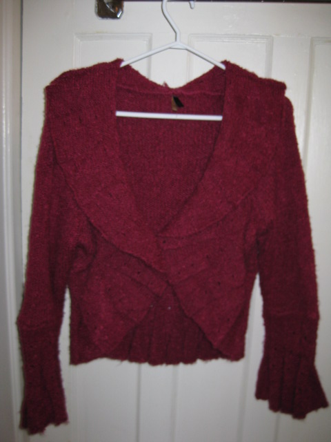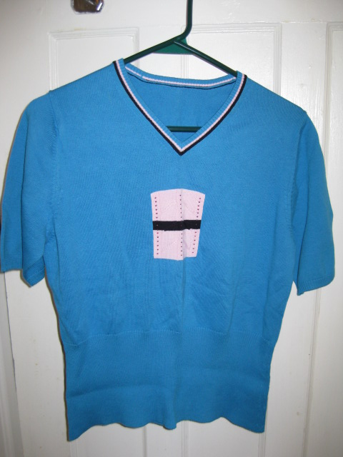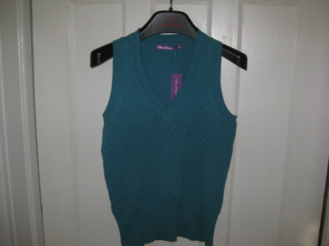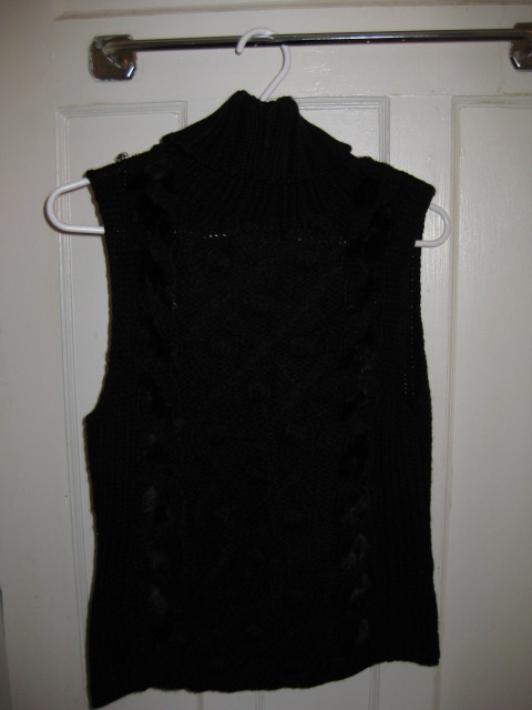 时髦的大领毛衣,品牌店买的,针织很特别,全新,170/88A号,$15。 (SOLD) 衬衫,全棉,全新,S号,$5。 毛衣,穿过,L号,$3。 毛背心,胸前有兔毛装饰,全新,M号,$5。 很时尚的吊带背心,上面像是胸罩,下面是A字形,全棉,全新,S号,$8。