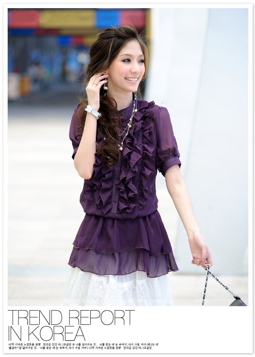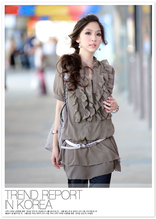 面料:雪纺纱 弹性:稍有 腰带:无 内衬:有 其他辅件:无 其他说明: 尺码:均码 胸围:平铺80CM 衣长:65CM 肩宽:36cm 袖长:20cm 浪漫希腊;立領荷叶边雪紡上衣 $23 白色 百搭腰带 $11