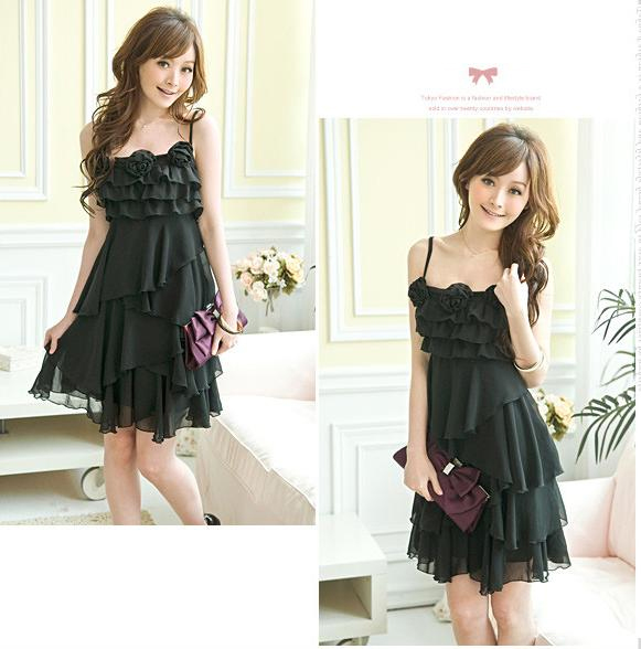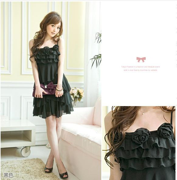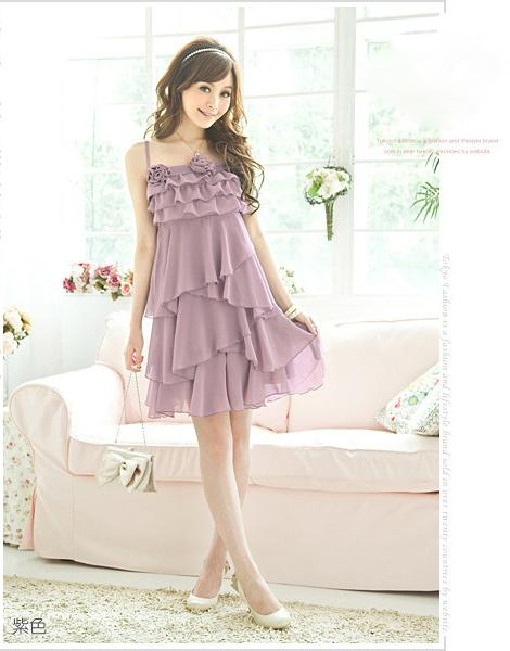 面料:120D雪纺 弹性:稍有 腰带:无 内衬:有 其他辅件:无 其他说明: 尺码:均码 腰围:平铺70CM背后有松紧弹力至:88cm 衣长:74CM不含吊带长度,吊带可以自行调节长度 连肩袖长:-cm 甜美淑女;时尚层层蛋糕吊带裙 $30