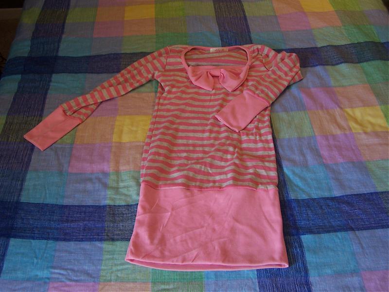 粉红色超可爱又有点小性感的包臀长T可以直接当短裙穿也可配黑色打底裤, $22