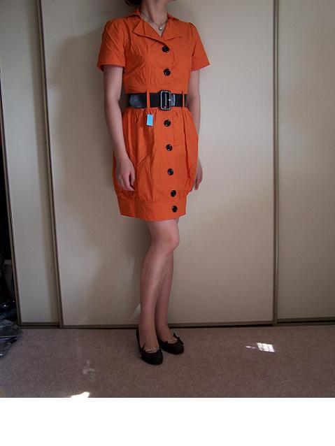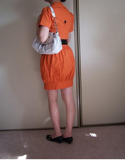 这个是我最喜欢的一件呢,纯棉的面料,灯笼连衣裙,款式很特别,还很突现翘pp哦,$28,送黑色腰带。