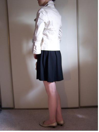 白色浪漫风衣,领口和后背都有蝴蝶结领子可以竖起来,在珠光宝气中蔡少芬经常穿类似这样款式的风衣,只要$39哦。size M