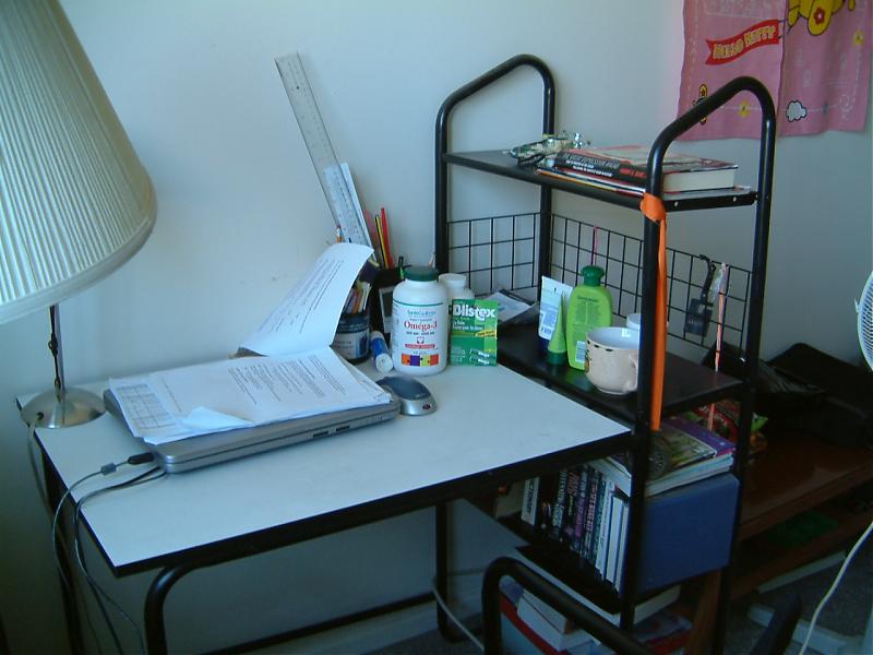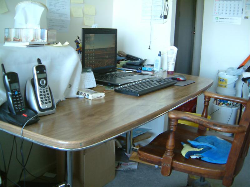 可伸缩的桌子+转椅 $20 既可做书桌又可做饭桌。